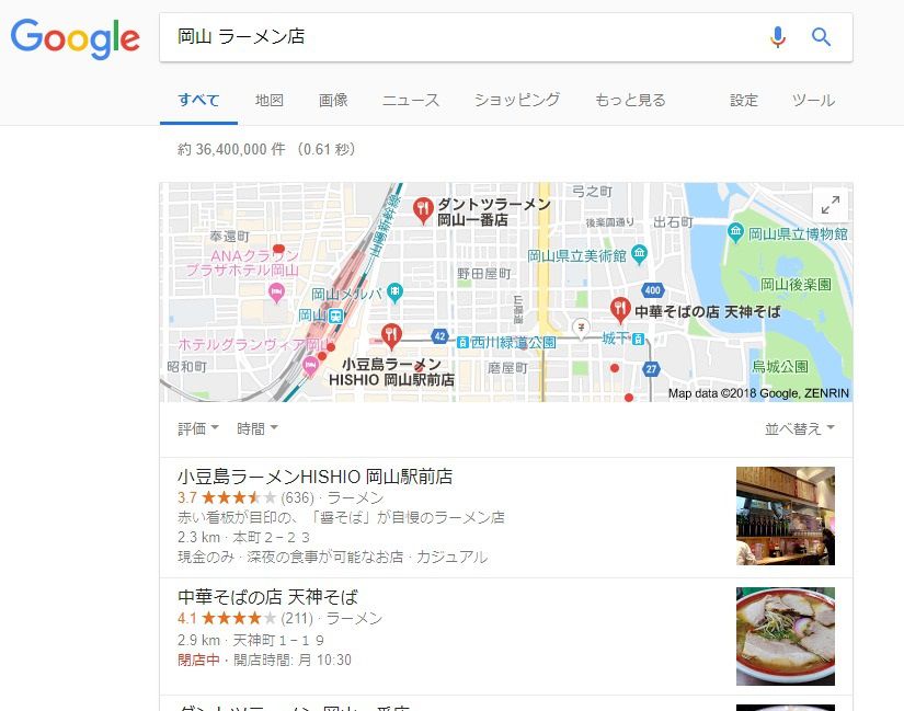 なので、ラーメンで検索してみました
