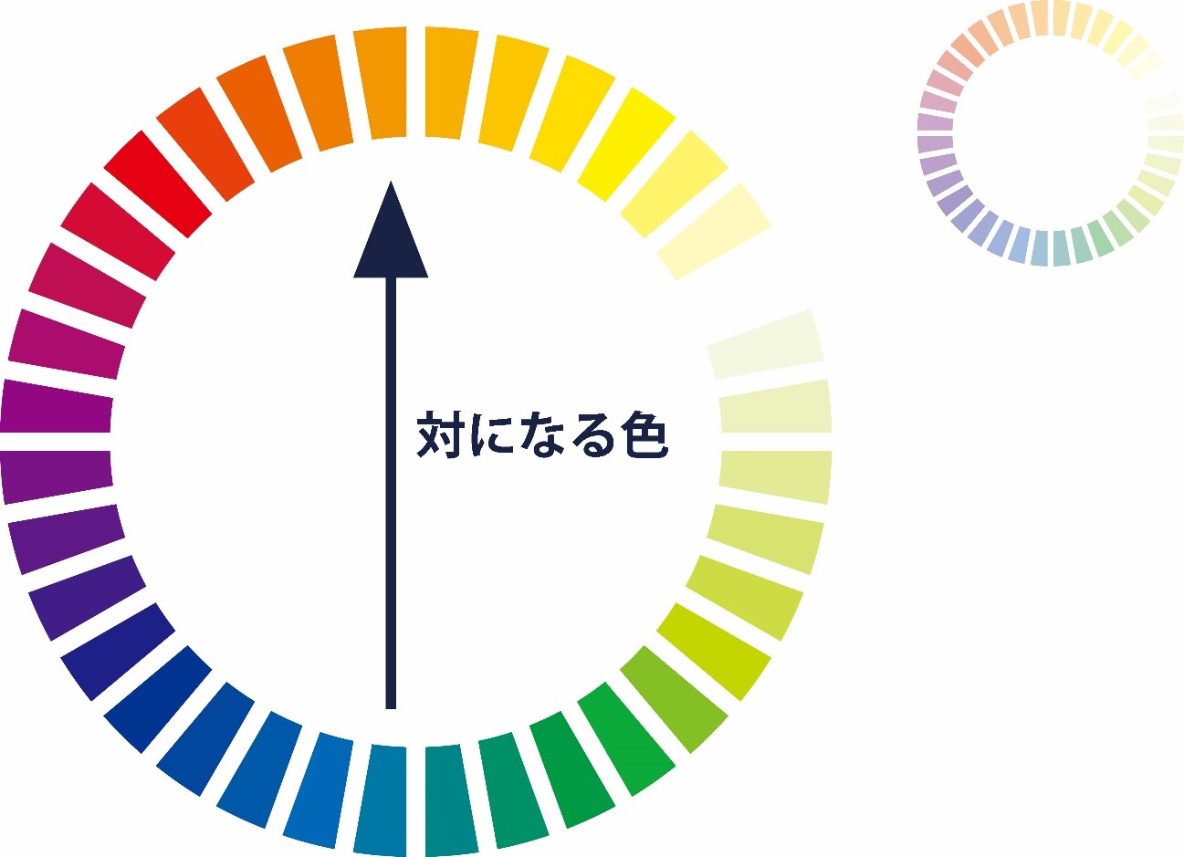 「色相環」というものがあり、その図を見るとわかりやすいです。